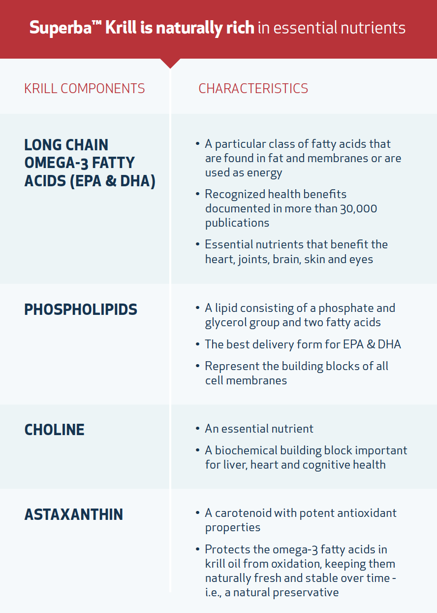 Where we source our krill oil from is important to meet all these high quality standards. We specifically use Superba krill as our source which also contains Choline. A nutrient that is essential to liver, heart, and cognitive function.